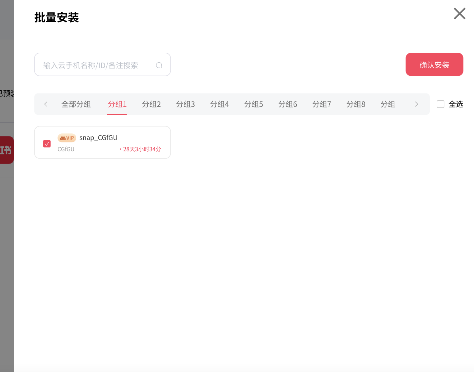 在火骆驼云手机APP市场,选定某个应用点击批量启动后,会弹出您将哪个云机想要批量启动该应用,可以设置多台云机批量启动应用。