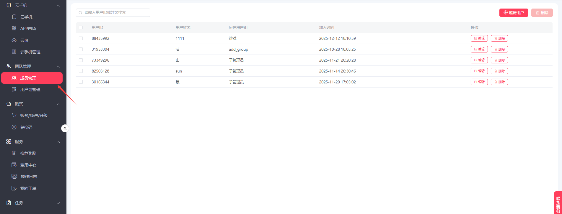 如何邀请成员 如何为成员分配云机使用
