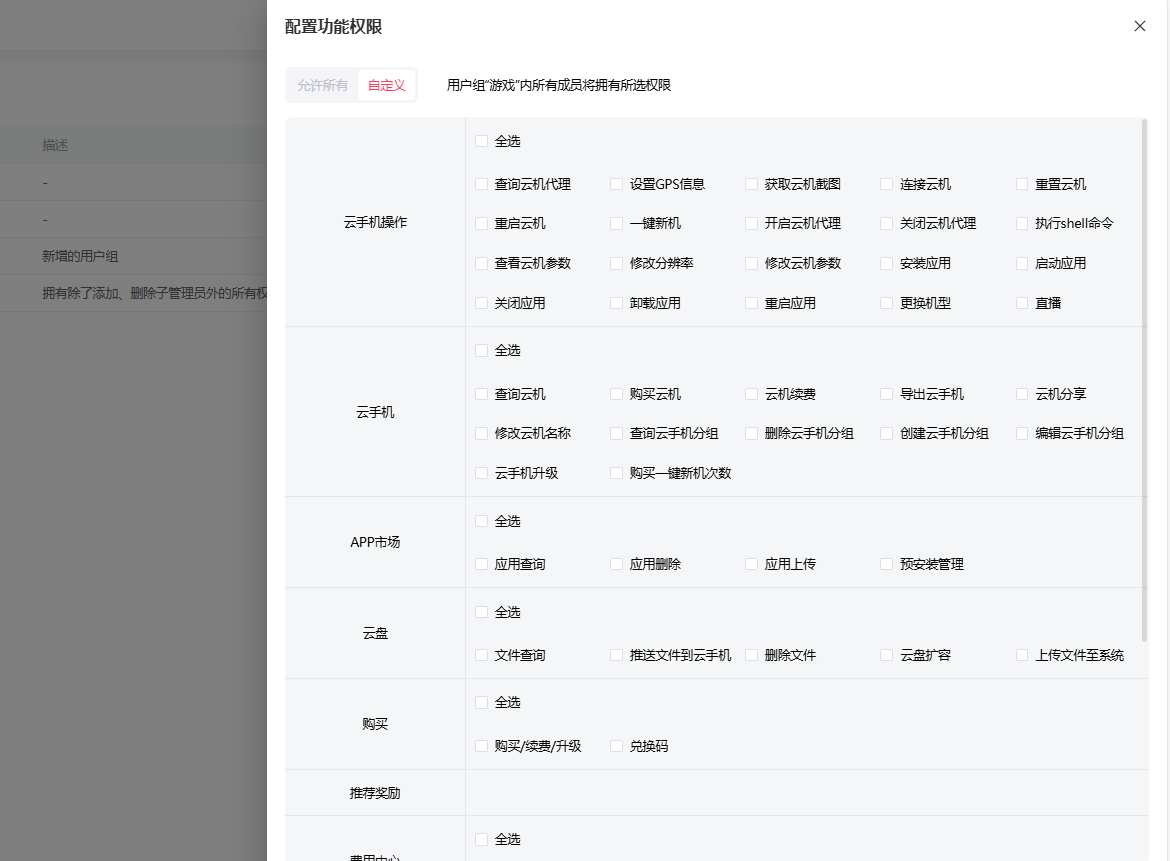如果是自定义,该组拥有部分云机权限;