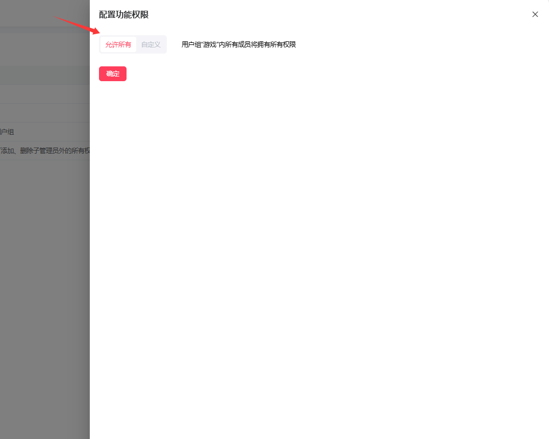 点击配置权限功能。如果是允许所有,该组拥有云机所有权限;