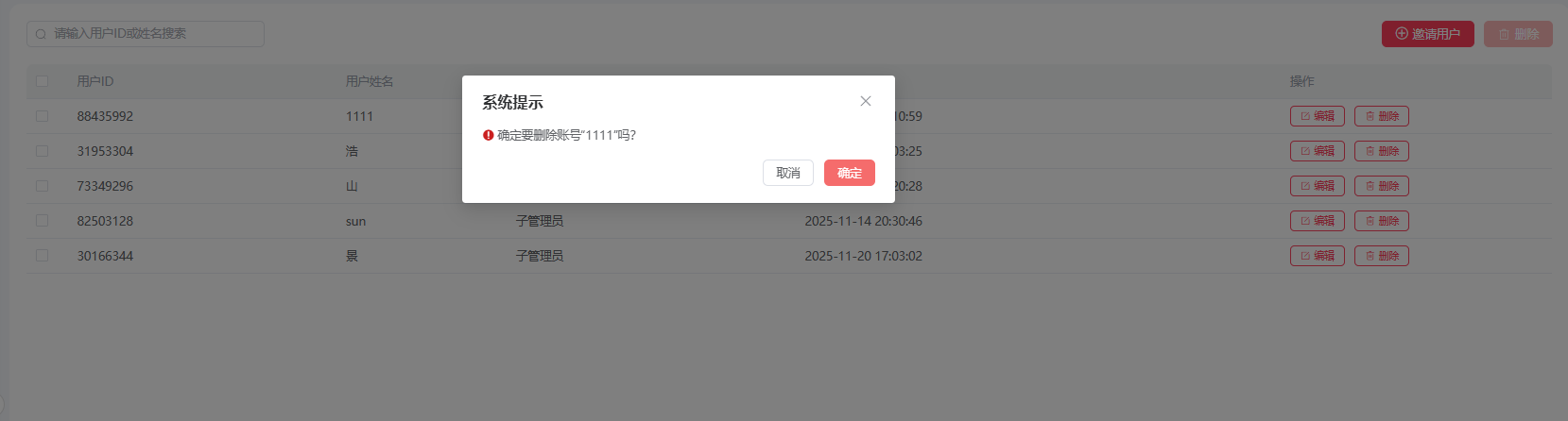 删除用户请谨慎操作;