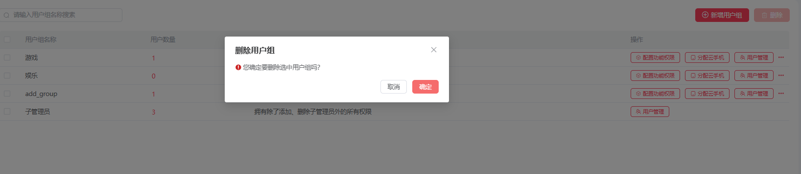 删除用户组,请谨慎操作;