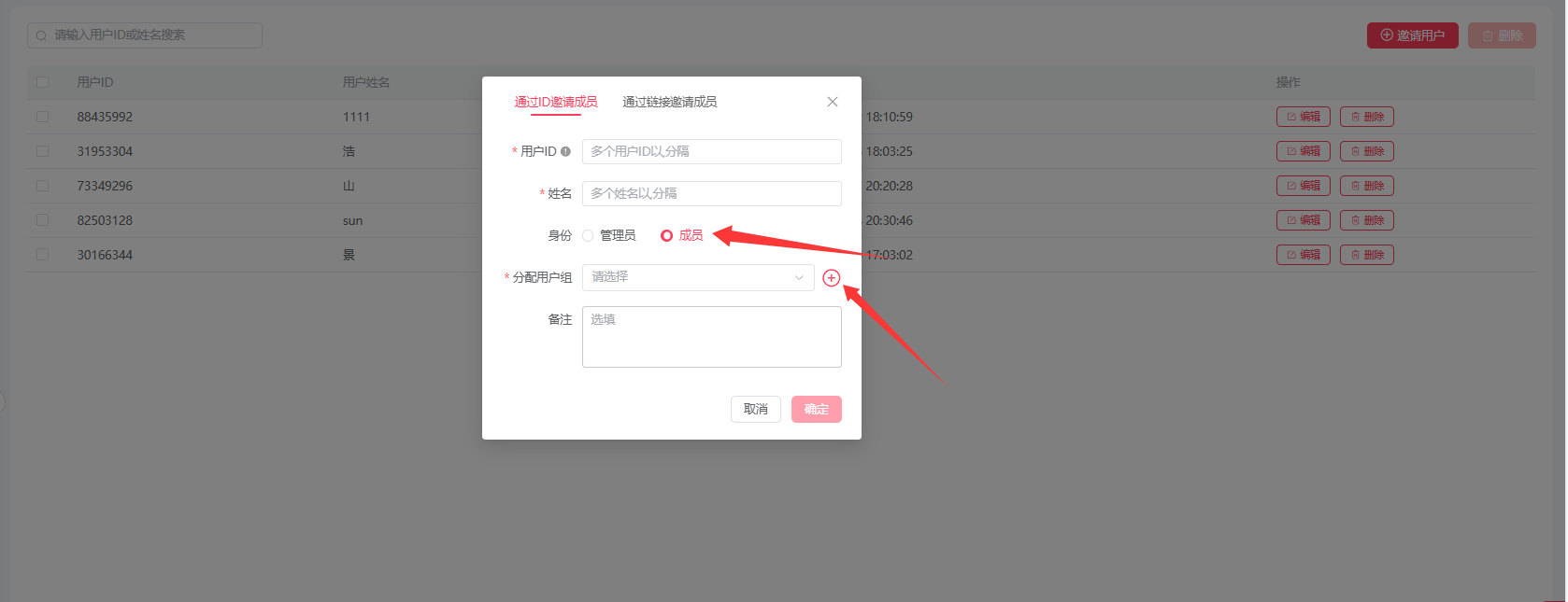 1. 邀请用户加入用户组