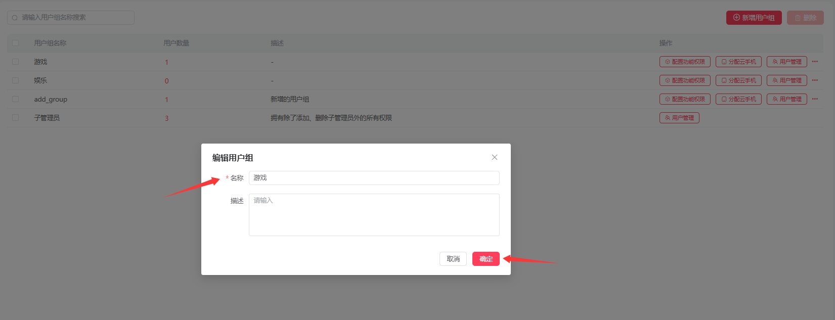 2. 通过用户组先分配云手机再集中配置权限,完成后,组内成员即刻获得对应的云手机使用权