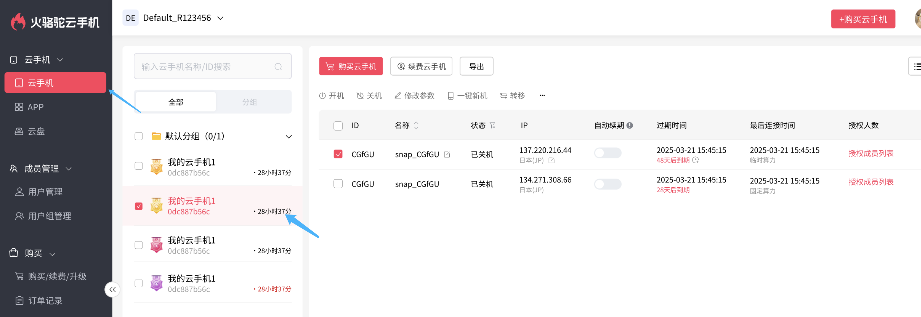 购买的云手机在“云手机”列表即可看到。