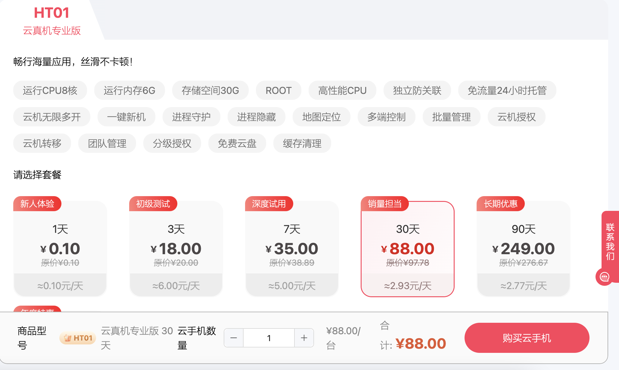 2. 购买云手机