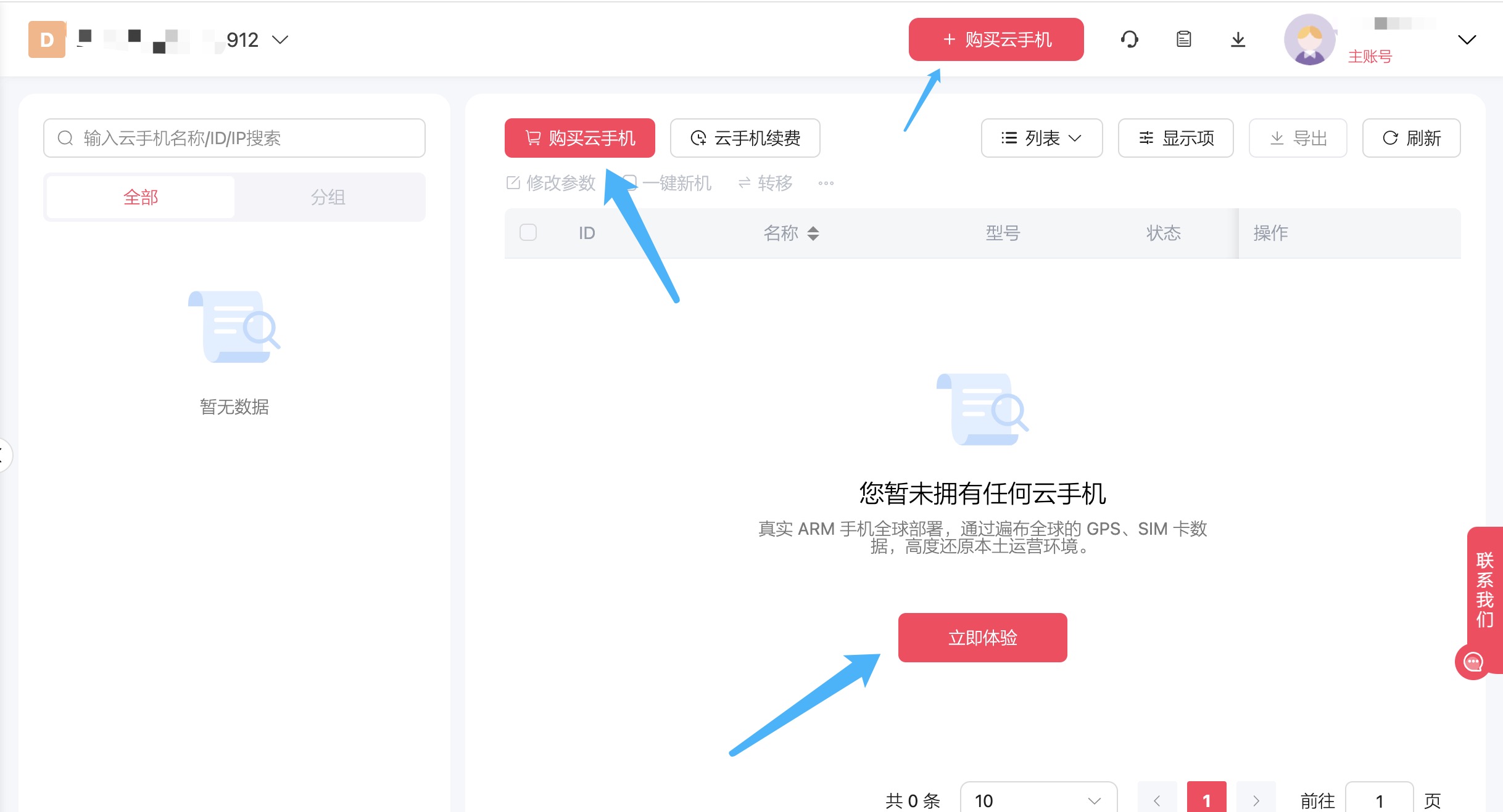 方式三:点击右上角的“购买云手机”